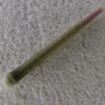 下の写真は、入歯洗浄剤を使って軟組織を溶かし、嚢状叉棘の顎部分の骨片を取り出したものです。