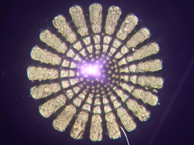 バフンウニの棘 (長さ:約5mm 直径:約400μm)も同じように断面を見てみます。