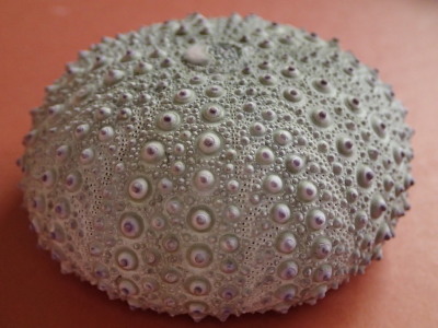 棘をすべて取り去ると、殻には棘がついていた大小のイボが並んでいます。
